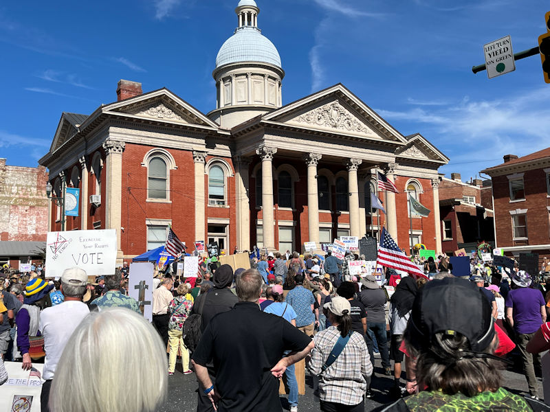 In a welcome response to the political and economic nightmare that had descended upon the USA since 20 January 2025, a 'Hands Off' demonstration was held on 5 April in front of the venerable Augusta County Circuit Court, with a good turnout and only a few awkward MAGA-style incidents as the city police seem not to have been prepared in advance. We attended and have posted some photos of the event here.