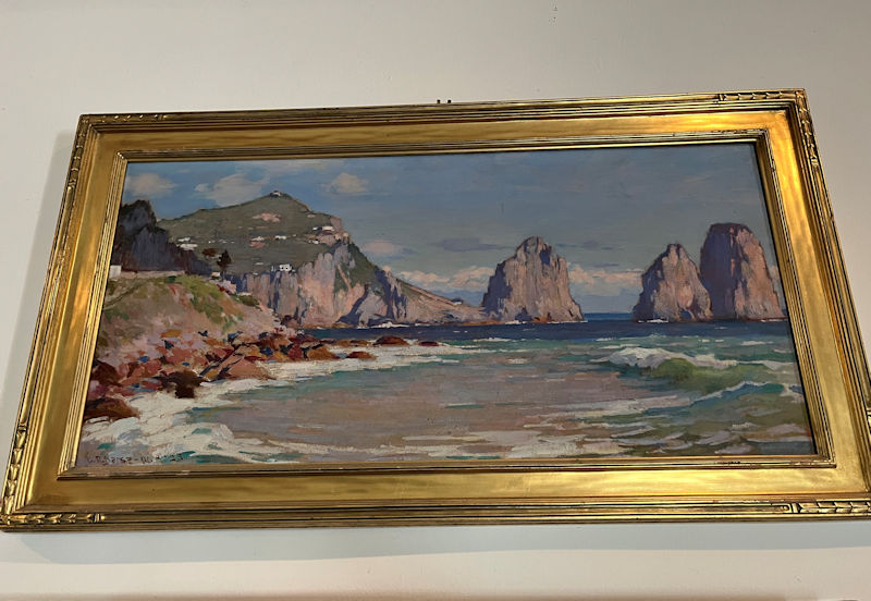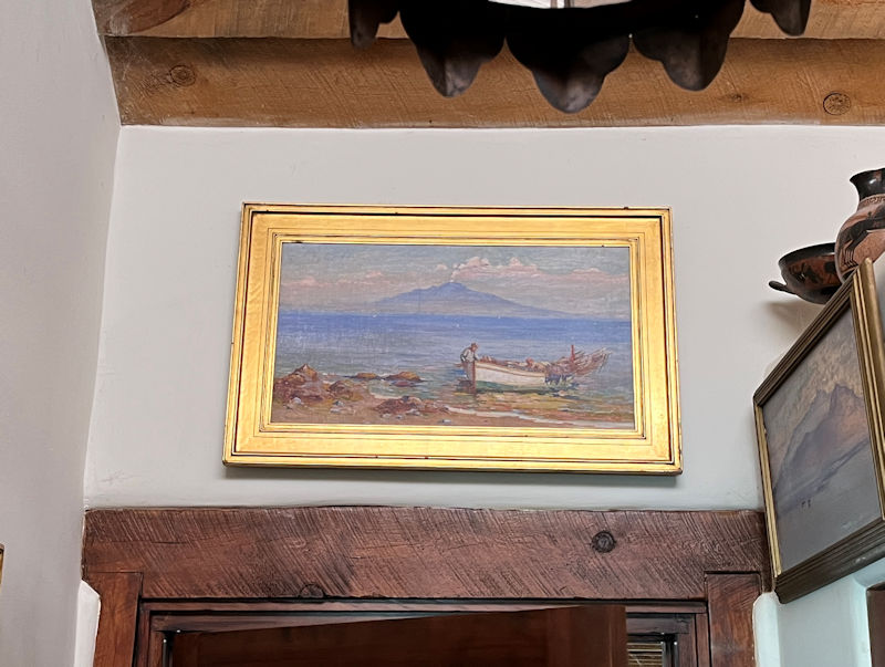 Artworks everywhere. Vesuvius above left, two reclining ladies on the right, and (on the lower left) the Faraglioni rocks off the southern coast of Capri.