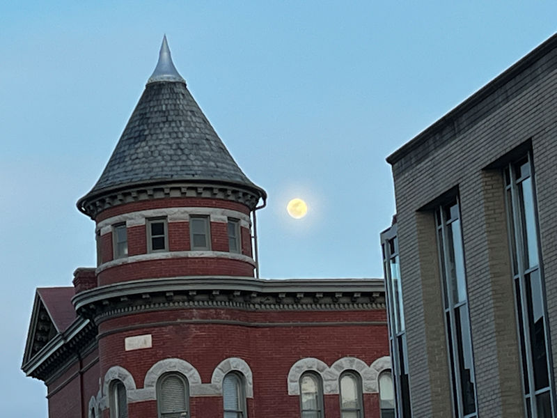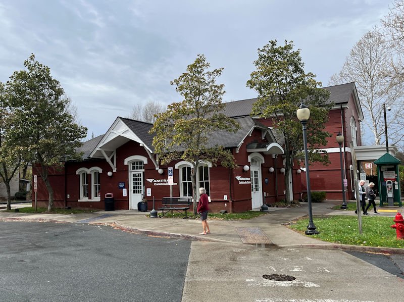 A slow wait at the beautiful Amtrak station, but eventually the bus and its semiqualified driver arrived, and we headed back over the Blue Ridge to Staunton.