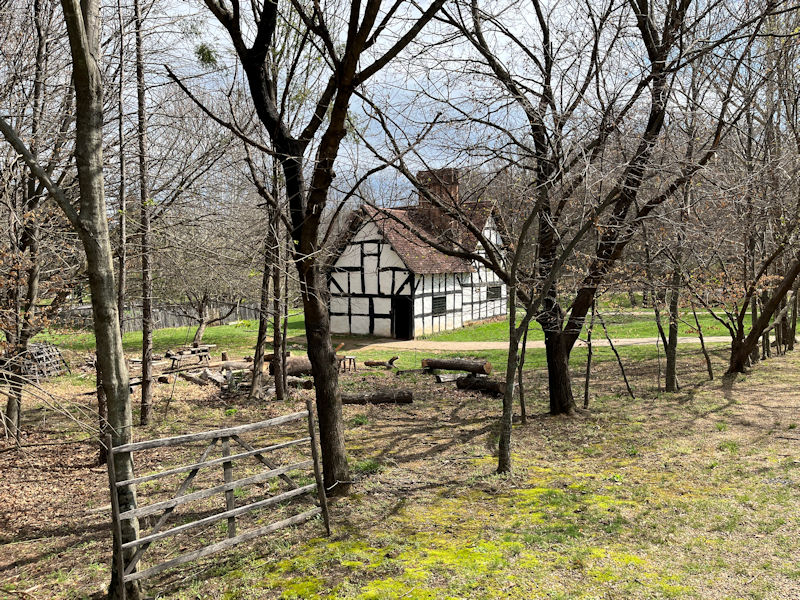 On the left, that's a log farmhouse carried over from somewhere near here, built in 1773 by a German immigrant.