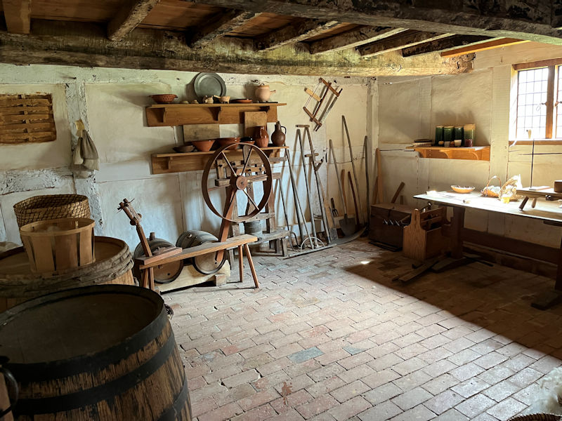 There's no docent on duty this early in the season, but will be soon, for sure. Here's the workroom for carrying out whatever necessary tasks a good yeoman's family might have to keep after.