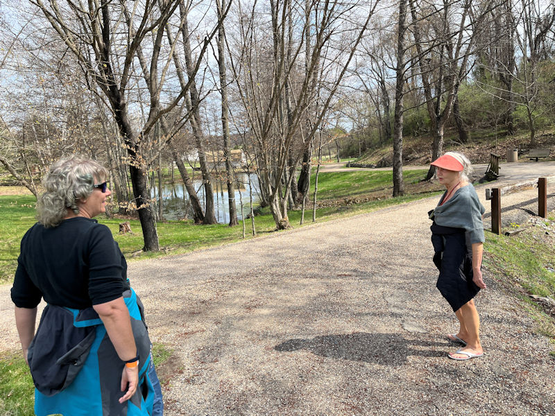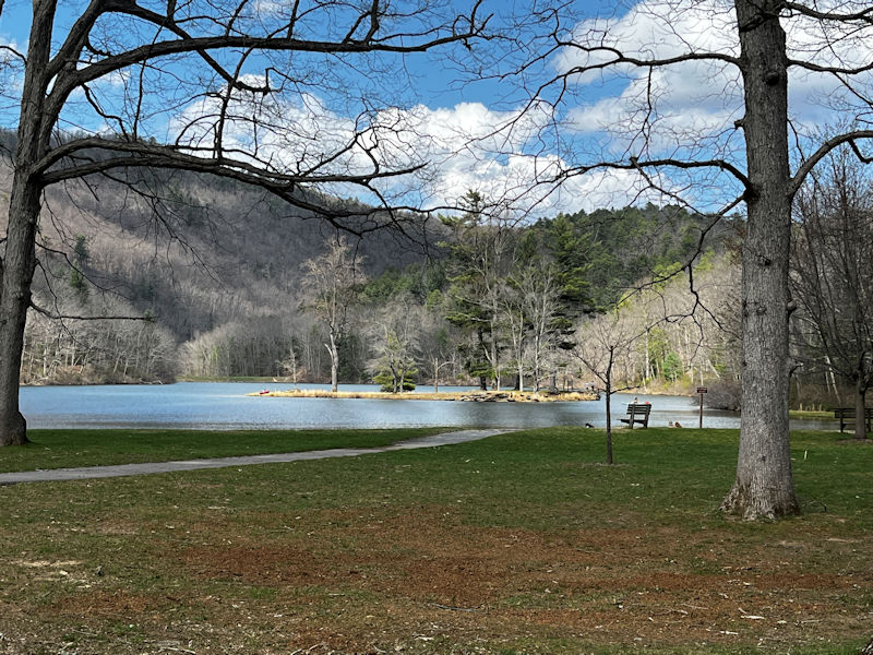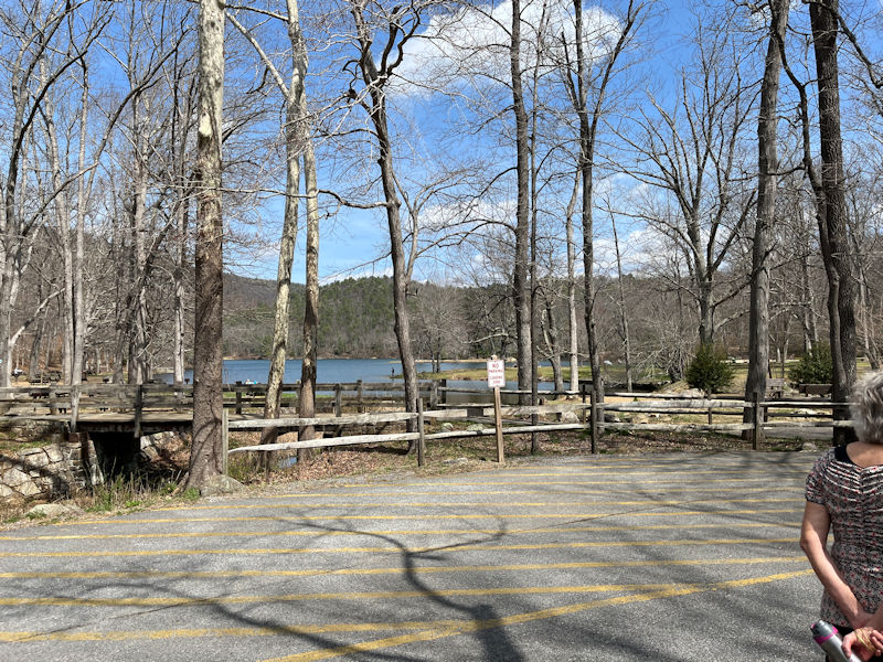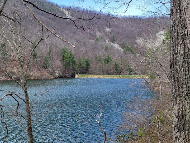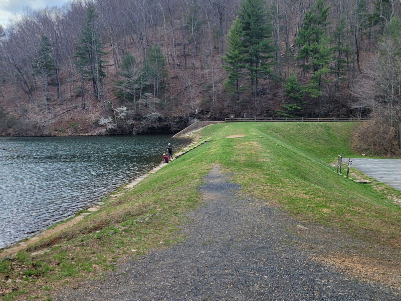 Sherando's a lovely little dammed up lake on a fork of the Back Creek, which feeds the South Fork of the Shenandoah River. It's a fine recreation site for family picnics, overnight or long stay camping vehicles, as well as casual hikers like us. We're not here in the summer months and have never seen it really over-crowded; for us, it's nearly always empty except for 'anglers' squatting on the dam at the far end or off the shoreline spots.