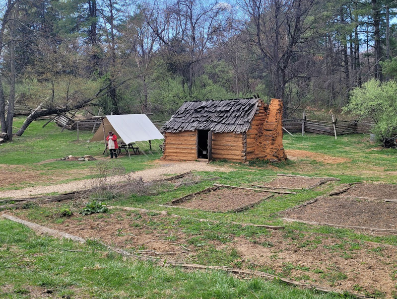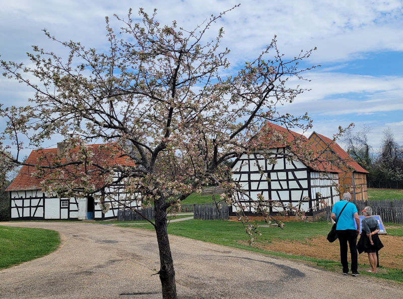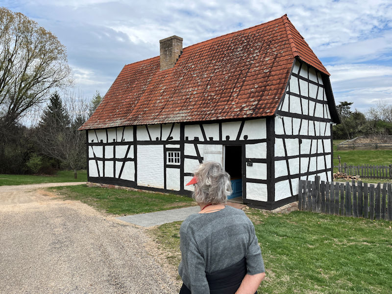 Now comes the 18th century German farm, from the southwestern (Protestant) Rhineland Palatinate. Most German emigrants moved east during the wars of that period, but perhaps 100,000 came to the US and many of them came down the trail through the Shenandoah Valley. (Photo by Alison.)