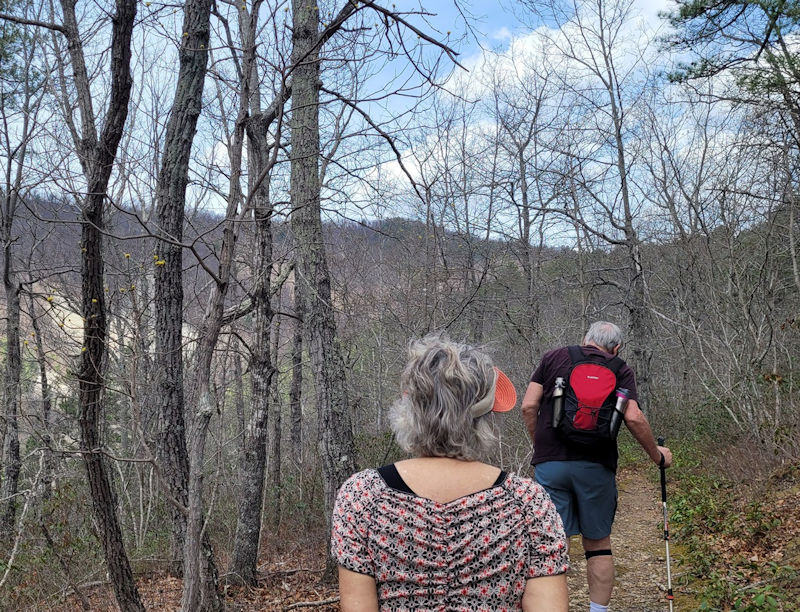 Topping out on the trail, overlooking the lake (which in a month will not be visible from here amongst the foliage).