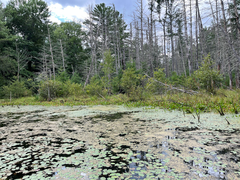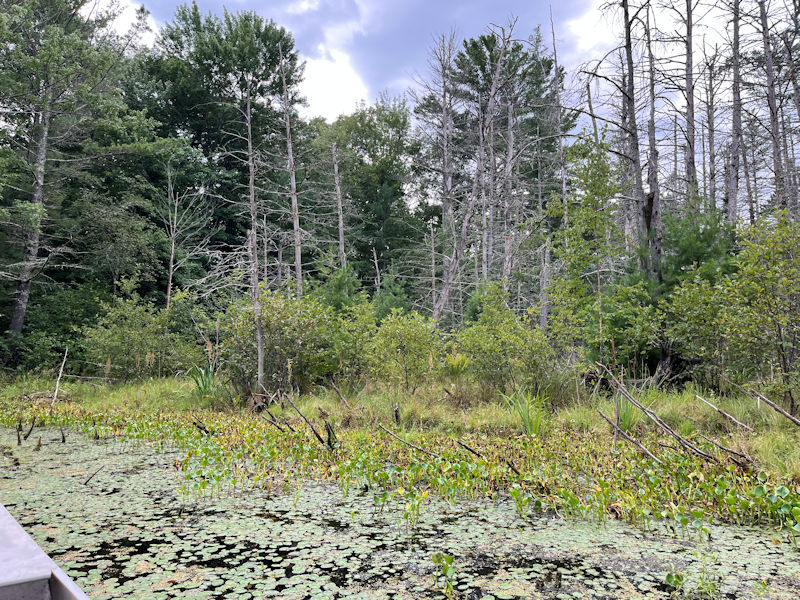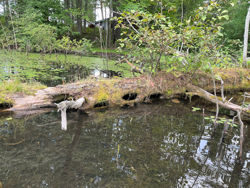 Probably the most impressive shoreline swamps on the lake are in Tomahawk and South Bays and along the South Shore Drive, but we've got a few worth checking out here in the North Bay (photo map below). This is a little marsh adjacent to our boathouse which at some point our neighbors on the far side christened as . . .