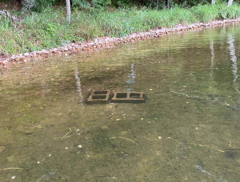 (In the period 1992 to 1995, 36 artificial fish cribs were placed all round the lake; 26 have recently been surveyed in a 'rehab project', and only two of those were deemed 'less than ideal for adding additional brush to the inside' [from the lake's summer 2025 newsletter]).