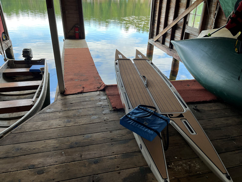 There's Cousin Rob's old hydrobike, now out of use alas. His wife Elke has just gifted it to our mutual friend Oscar, and before Oscar comes back up to the lake, we're verifying where it's been kept in the past 18 months.