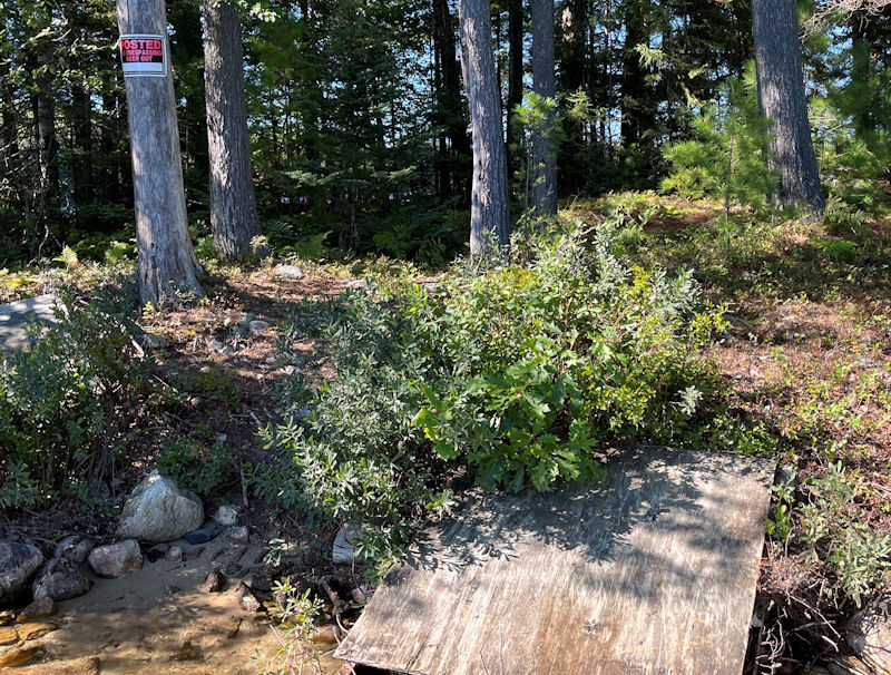 The little dock, which was in good nick when we first came here, and then began falling apart, has now been retired, probably forever. The slanty board is useless, it just wobbles. Oh, and the island is apparently posted for No Trespassing. Tant pis.