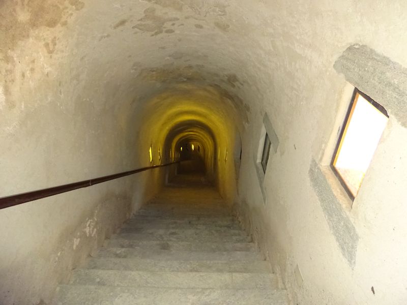 Fort Bard, built in the 1830s (more about that later), was rescued from desuetude, thoroughly cleaned up, and reopened in 2006 as a Big Something. It's got a permanent Museum of the Alps, a Children's Alps Museum, a Fortress Museum and a Frontier Museum, a visitable prison (so they say), a restaurant, and some independent artisanal shops, as well as exhibition spaces for some fairly prestigious shows.