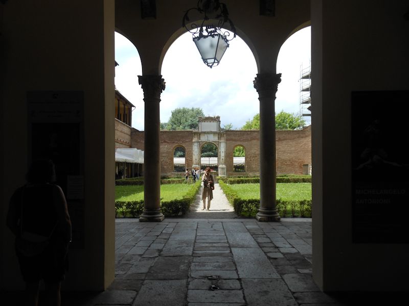 Into the 15th century Palazzo dei Diamanti, the Diamond Palace, which now houses the Pinacoteca Nazionale or National Painting Gallery as well as special exhibitions. The palace is open, but . . .