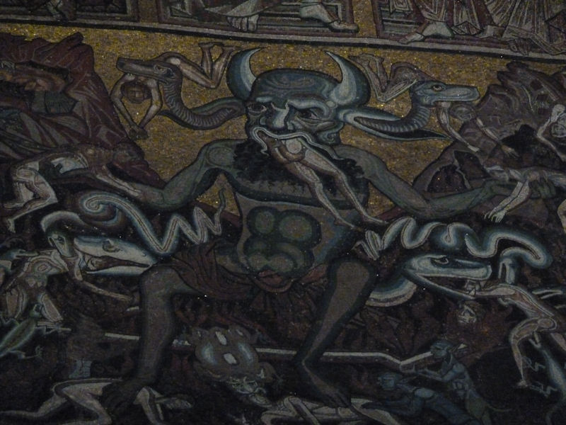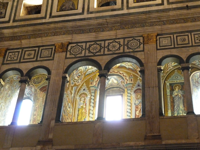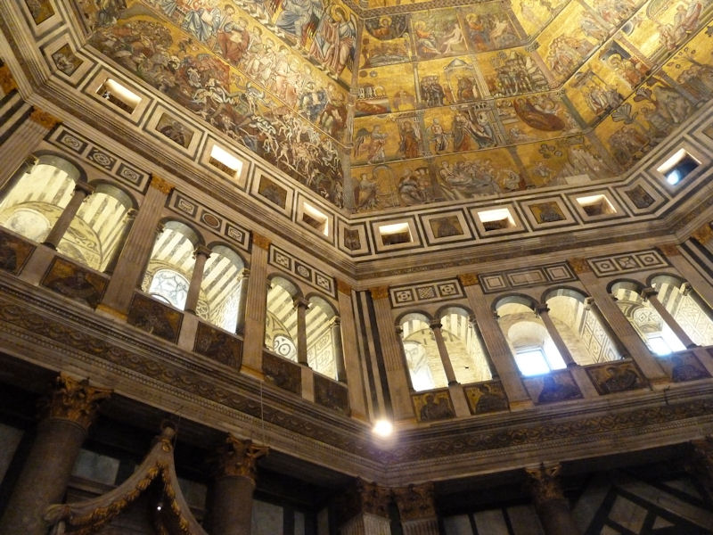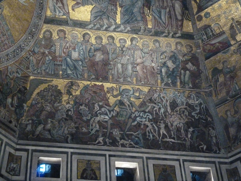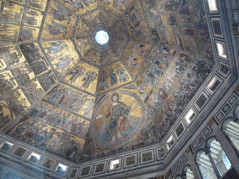 The mosaics in the dome of the eight-sided Baptistry, with the 26-foot Super Jesus.