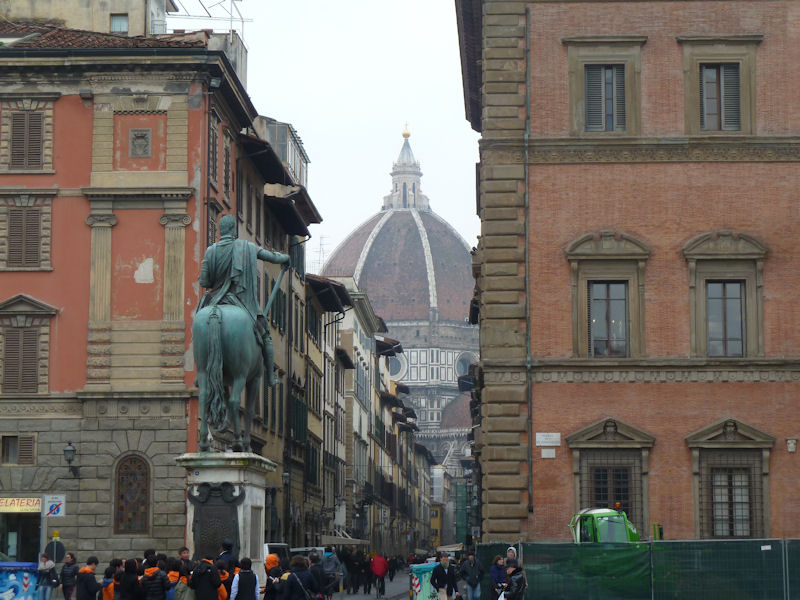 The back end of Grand Duke Ferdinand and his horse, and the Duomo