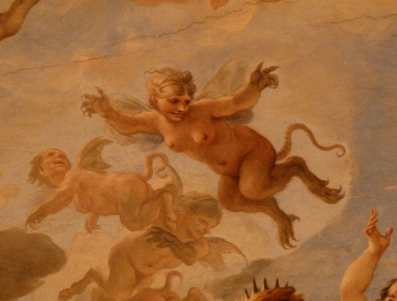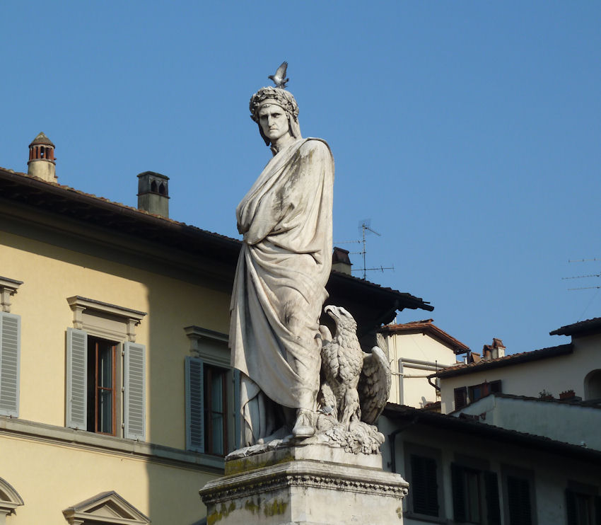 Dante Alighieri scowls down up the festivities, with his birds (19th century).