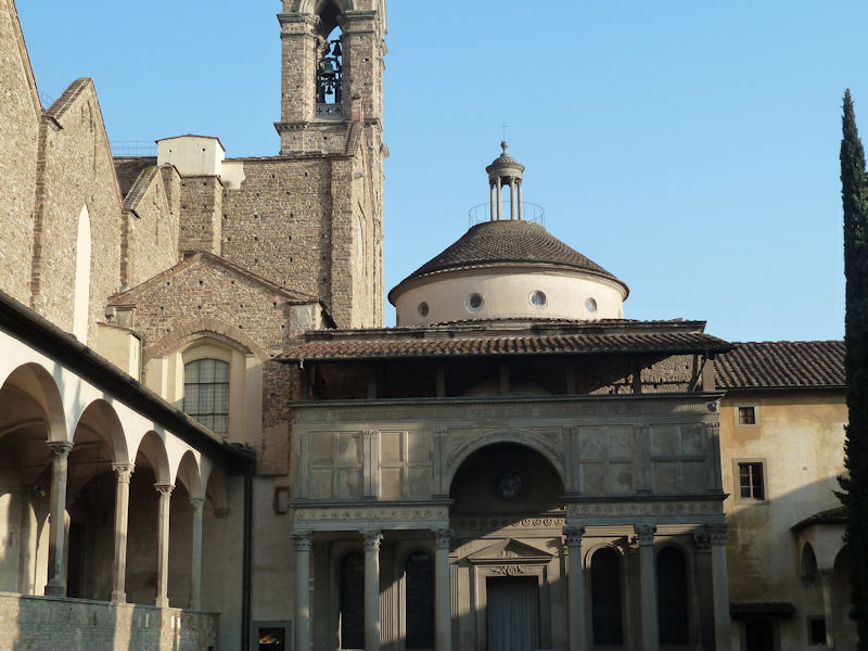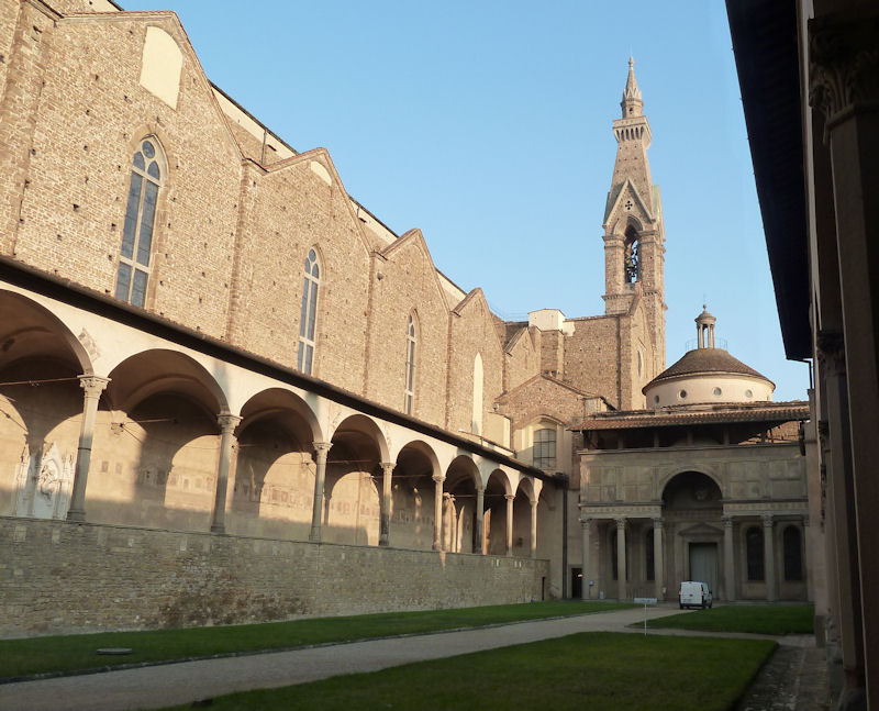This is the Pazzi Chapel at the end of the adjacent Franciscan cloister (possibly by Brunelleschi).