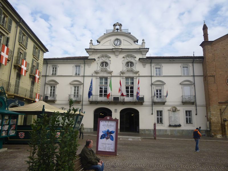 The Piazza San Secondo and municipio. The Romans defeated the Ligurian Satielli tribe and in 124 BC built a castrum or permanent military camp here, which subsequently graduated to a colonus and thence to a city in 49 BC. It flourished as a key strategic city for the Romans, central to the military road system around Turin and over the mountain passes to Gaul and what is now Switzerland.