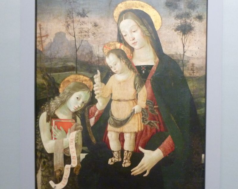 An affectless Mary Magdalene (showing only Mary Magdalene's half of the picture), by Benozzo Gozzoli (1466), who lived in San Gimignano for four years. (We collect pictures of the Magdalene.)