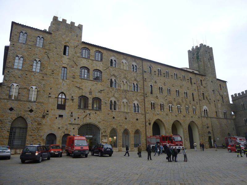 The city centre: the Piazza dei Priori, with the Palazzo dei Priori, now the city hall, backed onto the cathedral (in stripes), with a fire truck at the ready! And the tourist office on the right.