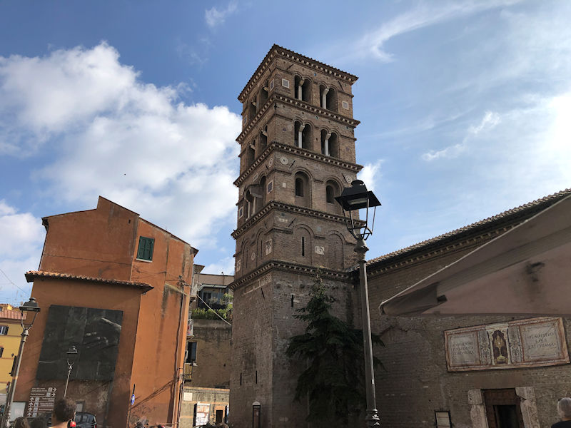 Here along the main road, with its own little piazza, is the Church of San Pietro, first built in the early 6th century from one of the rooms of the Emperor Caracalla's baths, restored in the 12th and 14th centuries, and still hanging on quite well.
