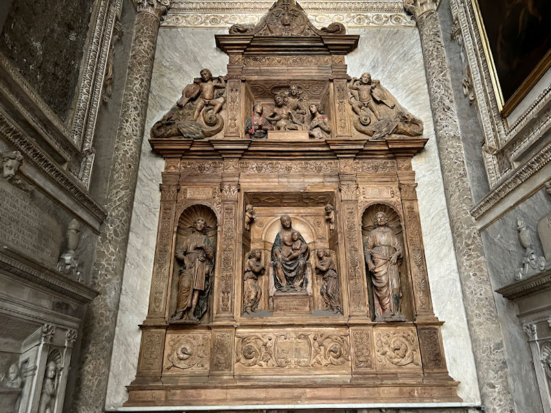 That's the side chapel tomb of Cardinal Francesco Carbone, who died in 1405. (We're great fans of spiral columns.)