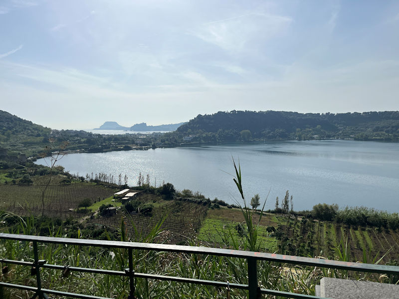 At the start of our lakeside perambulation, a little background. The name Averno is understood to have come from the Greeks of nearby Cumae and to have meant 'no birds there'. If that was true, it was presumably because of toxic gases venting out of the volcanic crater, as we're here in the middle of the Campi Flegrei or Phlegraean Fields of volcanoes well known to the ancients.