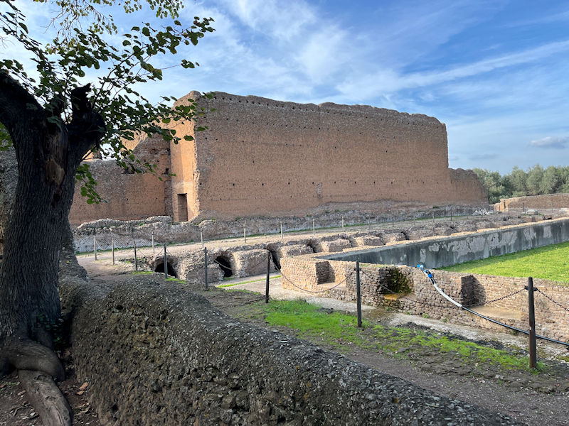 Continuing our unfortunately aimless walk through the grounds of the Villa Adriana, we're going up a level behind the Great and Small Baths. We've been to see the Pecile garden, the Maritime Theatre, the 'Hall with Three Exedrae', the Great Baths, the Canopus pool and Serapeum, and the so-called 'Praetorium', and we're circling back to the imperial palace complex.