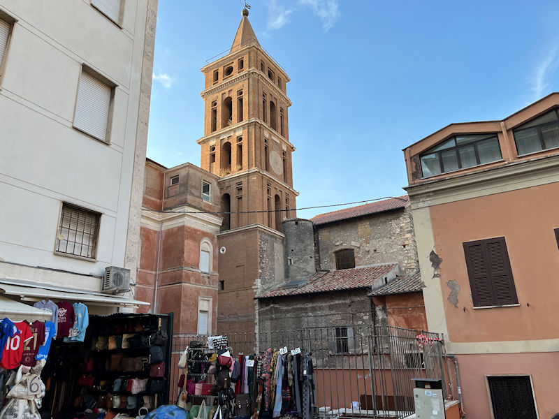 The bell tower of the Church of Santa Maria Maggiore at the back of the church in the next square