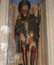 This is Saint Rocco himself, patron of plague patients always shown displaying his bubo and accompanied by a faithful dog with bread in its mouth, meant for Rocco of course. St Roch or Rocco, who is said to have been a noble lad from Marseilles in the 14th century who came to northern Italy as a mendicant pilgrim and devoted himself to ministering to victims of the plague -- effecting many miraculous cures, we're told.