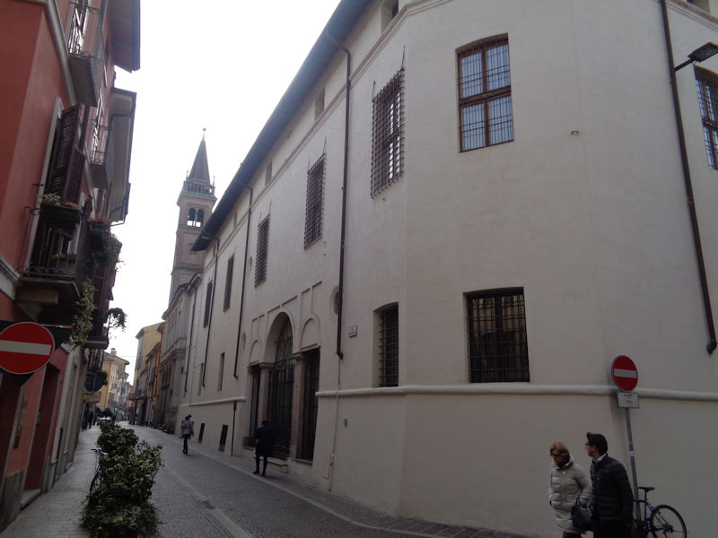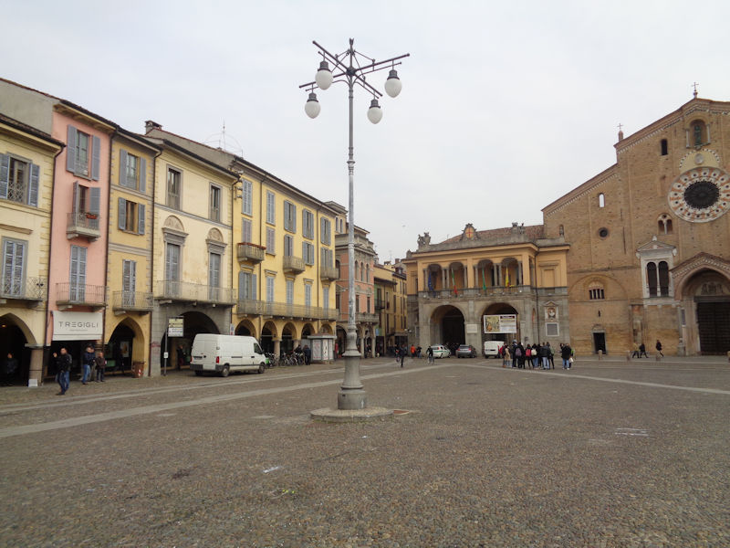 We're on the Via Tito Fanfulla on the northern part of the centro storico, and it was in the Dominican monastic complex just a few meters down the street that the Treaty of Lodi (or Peace of Lodi) was signed by Milan, Florence, and the Kingdom of Naples in April 1454 which ended the 'Wars in Lombardy' (1423-1454); it established the boundaries between Milanese and Venetian spheres of control as the river Adda, and it confirmed a 'balance of power' status quo for northern Italy among those three plus Venice and the Papal States, excluding smaller powers like the Estes, Gonzagas, Savoyards, and Genovese. The treaty became irrelevant when the French armies of Charles VIII invaded northern Italy in 1494.