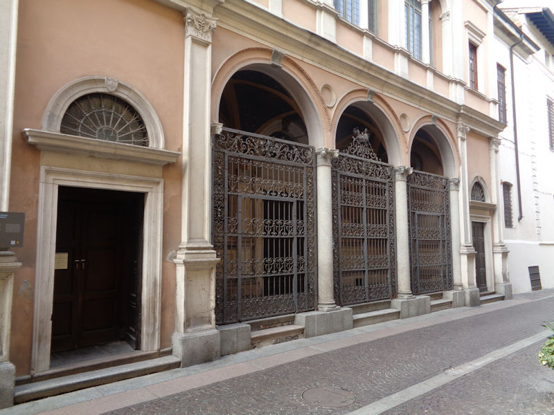 The unassuming entrance and front portico of the Incoronata -- the façade dates from 1879, but the amazing interior was designed by a student of Bramante named Battagio in 1488 and built at the city's expense over a brothel. It's 'considered one of the masterworks of the Lombard Renaissance art'.