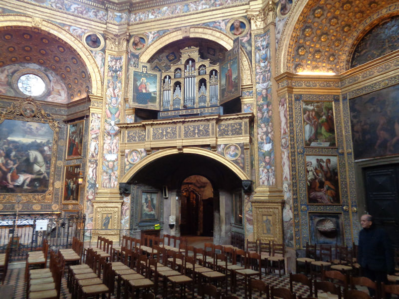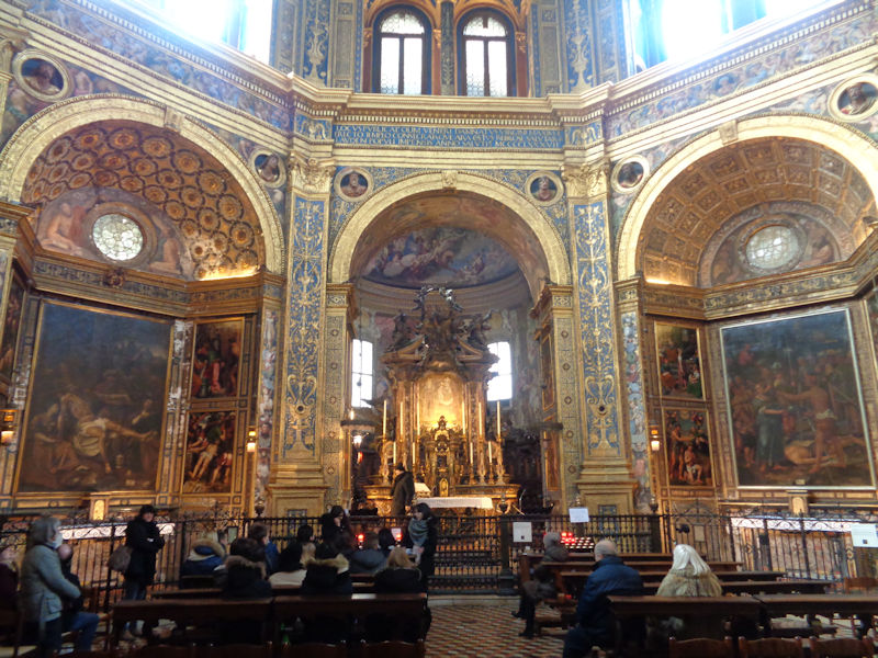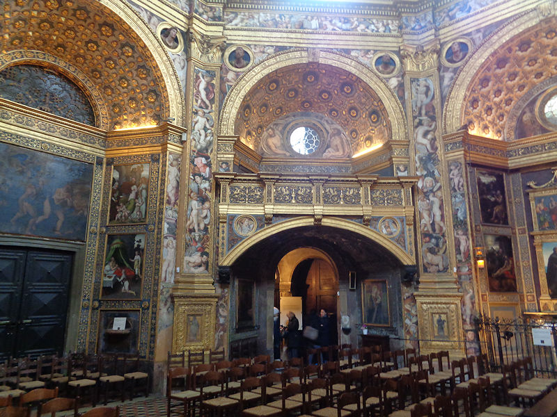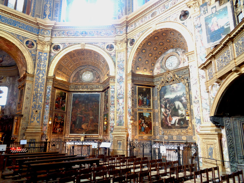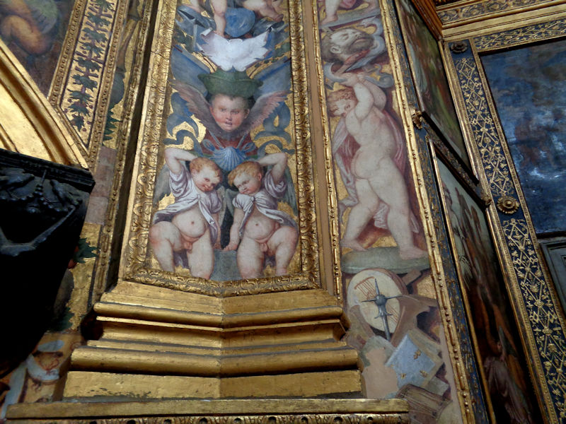 Not an inch left undecorated. There are all sorts of pictures here, mostly conventional treatments of Christian themes, and a great number of them done by the collection of Lodi painters all from the family Piazza (Martino, Albertino, and Callisto) as well as four pictures by Ambrogio Bergognone, best known for his work at the Certosa di Pavia.