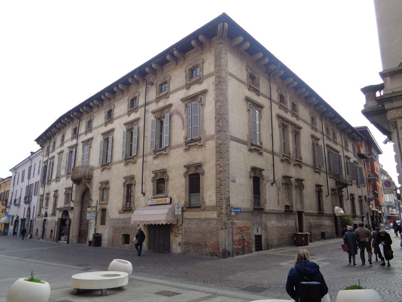 The palace originally extended all along Corso Vittorio Emanuele II (which was originally the main road from the Milan Gate, the Porta Regale, to the Piazza della Duomo), but a great part of it was purchased in 1672 by the Barni family and renovated, beginning in 1698, as a separate baroque palace, now called the Palazzo Barni, also visitable.