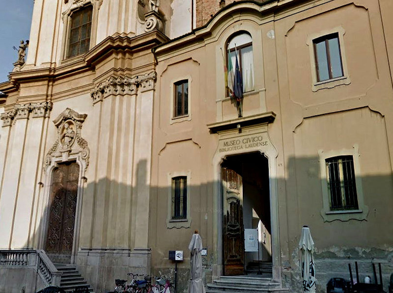 That's the Church of San Filippo Neri (1740-1745) on the left and, oh look, the Museo Civico on the right, established in 1792, and the Biblioteca Laudense (another word for 'of Lodi', from the Latin name), in the former convent variously called the Palazzo San Filippo and the Palazzo Galeano with no discernible sense to the difference.