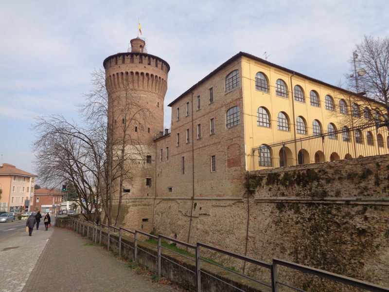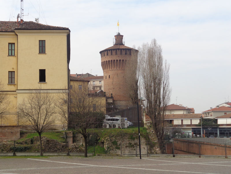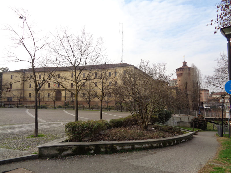 The Piazza Castello at the southwestern corner of the old city -- it appears that all that remains of the Visconti castle adjacent to the former Porta Regale is the tower in the background, and that the present 'castle', now the Questura di Lodi, the state police headquarters, and formerly the Austrian military barracks, came later, but that's not entirely clear.
