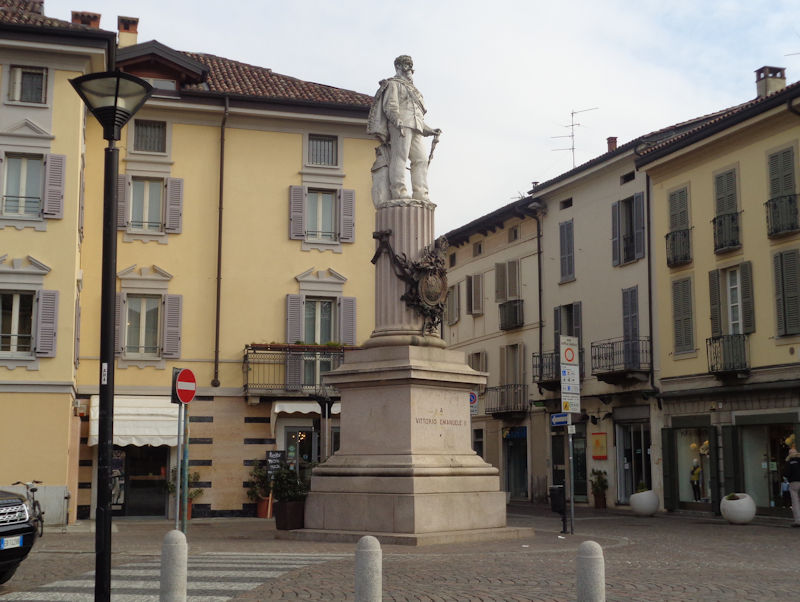 Vittorio Emanuele II, the first king of the unified Italy -- the square and statue were put up here facing the castello in 1862, at the head of the Corso Vittorio Emanuele II leading to the Duomo, to open a thoroughfare to the station of the new railway.