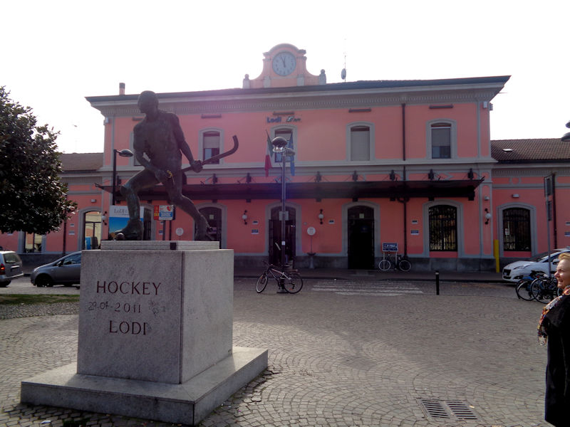 . . . the Lodi train station and the monument, not to Garibaldi or King Umberto I, but to the 2011 Lodi hockey team. We're here to get our rail tickets to Milan for a few days hence.