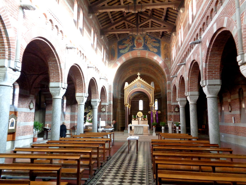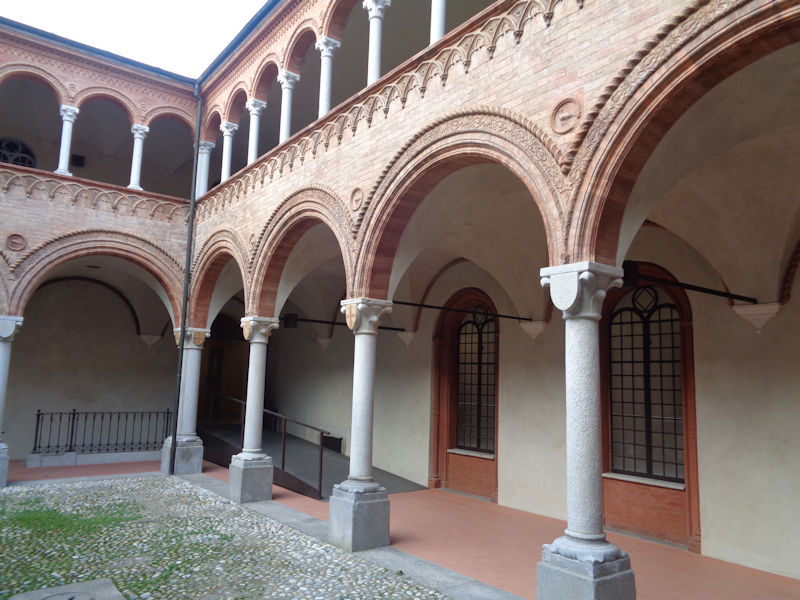 The Chiesa di San Cristoforo, a bit the worse for wear and with an unfinished façade, along with the adjacent convent of the Olivetans, was begun in 1564 by Pellegrino Tibaldi, who worked for Cardinal Borromeo around Milan and who after 1586 worked for King Philip II on the Escorial in Spain. Long used as a stable after Napoleon's arrival, it was restored in the late 1900s, though not especially well by the look of the outside of it.
