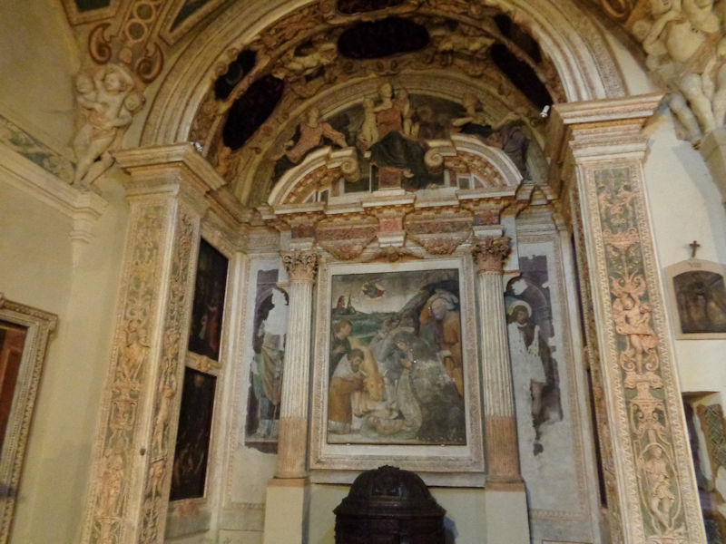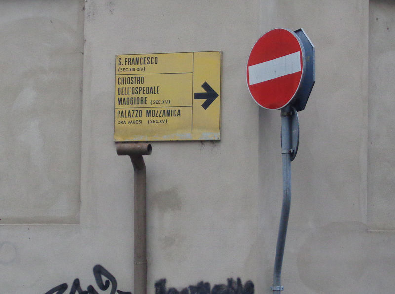Back to the Church of St Francis in the Hospital Square, which surely must be open by now! The "open-sky" windows at the top of the façade, by the way, started a trend; we recently noticed the same thing in Crema and realized that it must have been a 'thing'. Or a 'meme'.