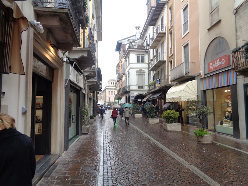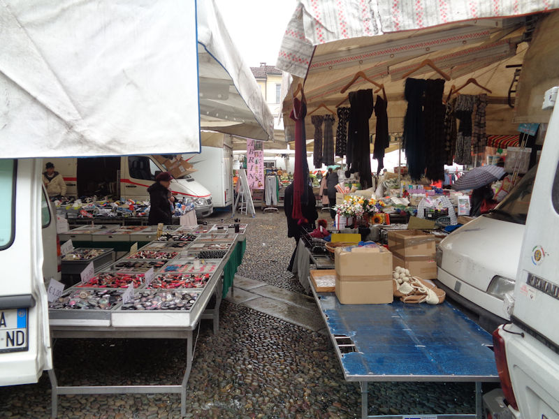 It's a rainy 22 February, which we're declaring a 'rest day'. This is the Corso Roma, and the street market's on.