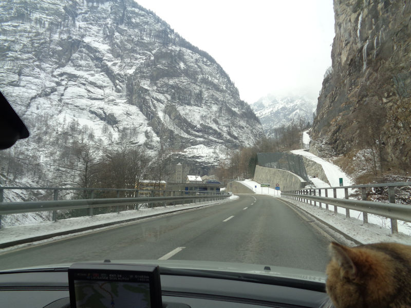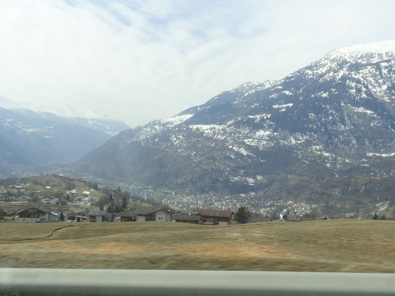 Approaching Iselle, Italy, near where travelers can, if they wish, load their cars onto trains that will convey them through the tunnel down to Brig on the Swiss side of the Valaisan Alps.