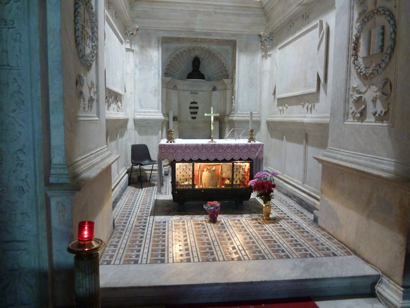 A vial of the dried blood of San Gennaro is brought out on special dates and usually liquifies for the throngs crowding in to see it. It's evidently an iron-based concoction that liquifies when shaken. There's a fantastic baptistry here with 4th century mosaics, but my sneaked no-flash photos were truly disappointing.