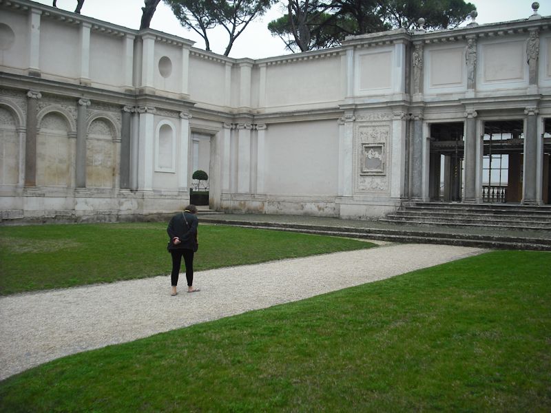 Past the second courtyard and the semicircular casina, looking down into the nympheum for leisurely lunches and all-day picnics on a hot day, with big statues and what not in niches everywhere.