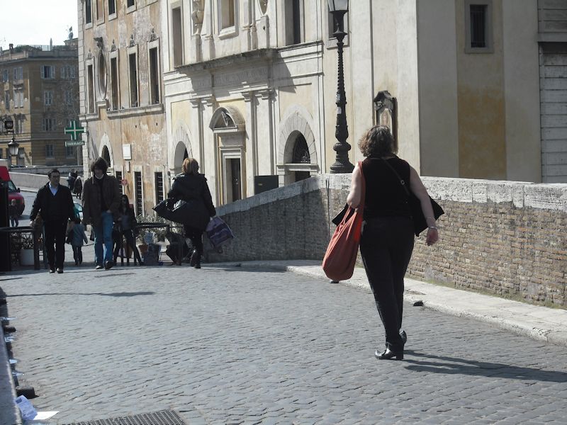 Over the Tiber Island bridge, with no moments to spare