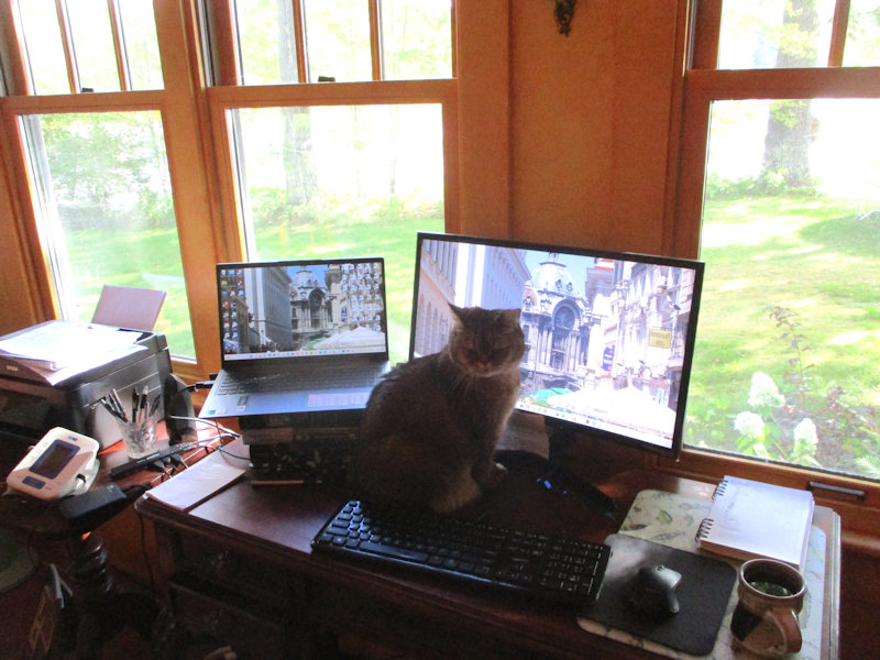 Melvin is to be congratulated and given another biscuit for the care he's learnt to take, so as not to sit directly on the keyboards.