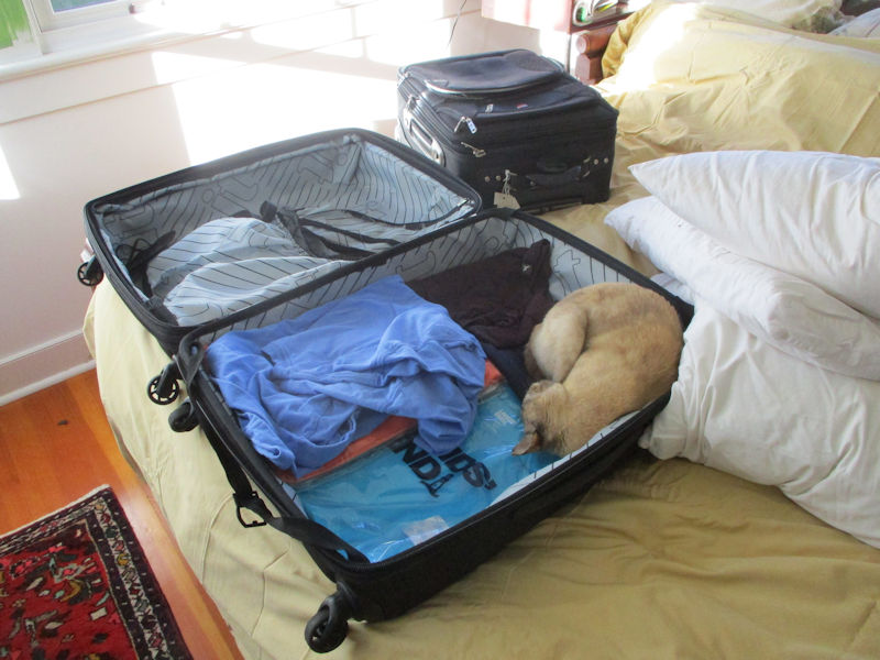 Packing up for the long trek in prospect. The cats know when they see the suitcases come out.