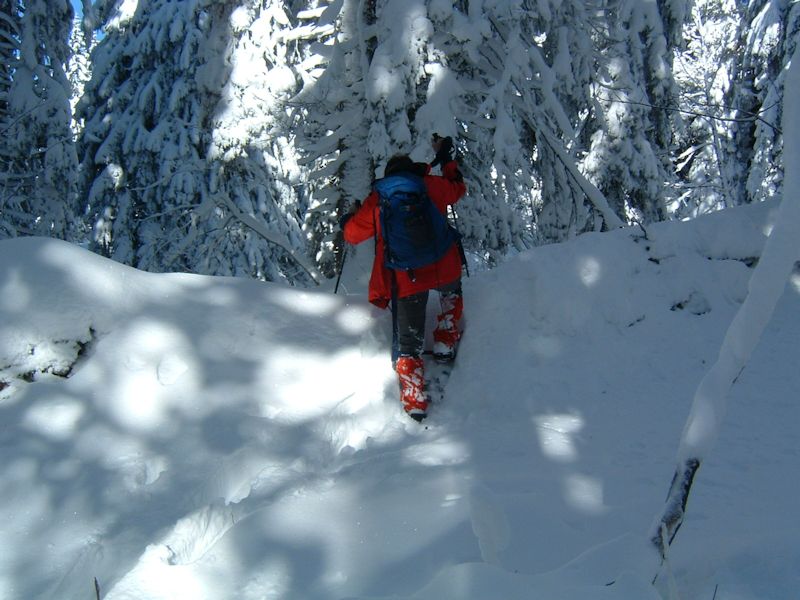 Joe descending through one of the gulleys off Crêt de la Neuve.