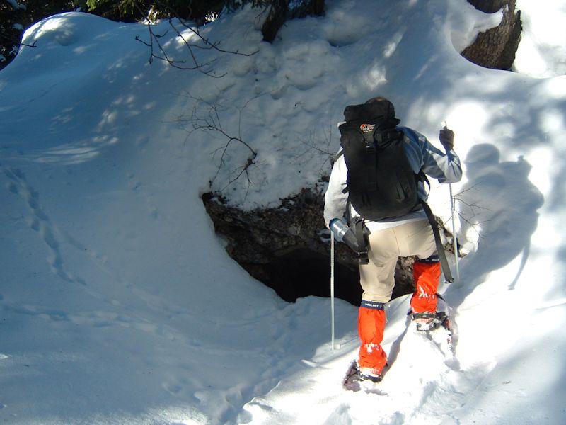 chamois tracks at the mouth of the cave.