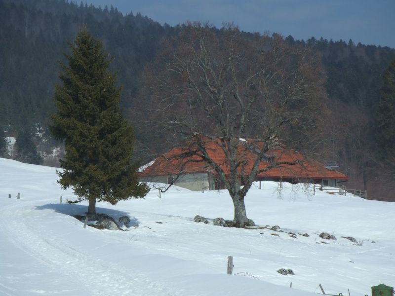 top of the trail up the Bois au Ministre (1110m), the farm of La Dunanche appears