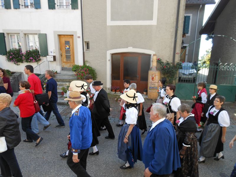The speeches and schoolchildren's choral performances are all over, and the parade will process down to the lower part of Féchy for an all-day wine tasting extravaganza, with fish-and-chips also on offer and musical and folklorique activities all day.
