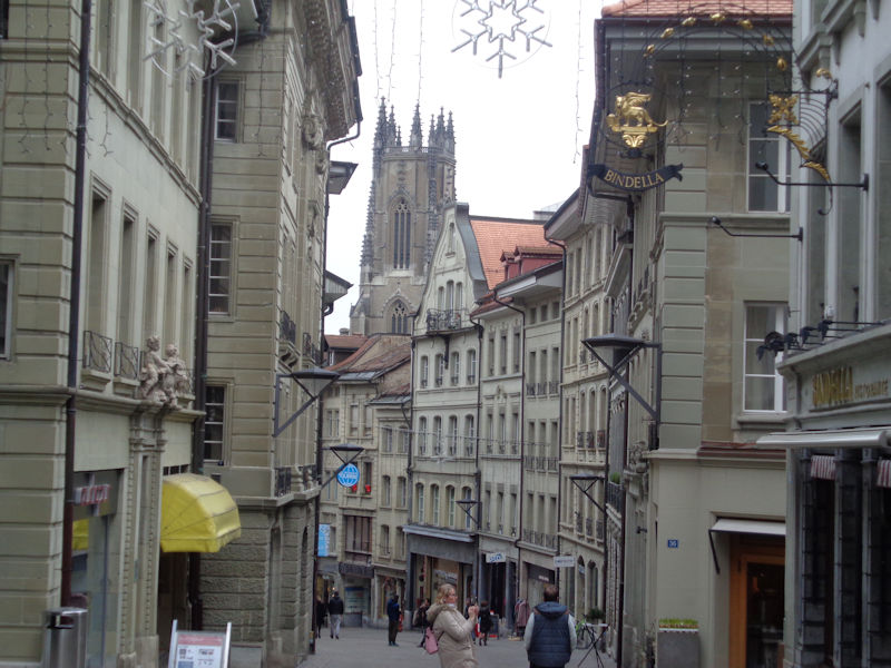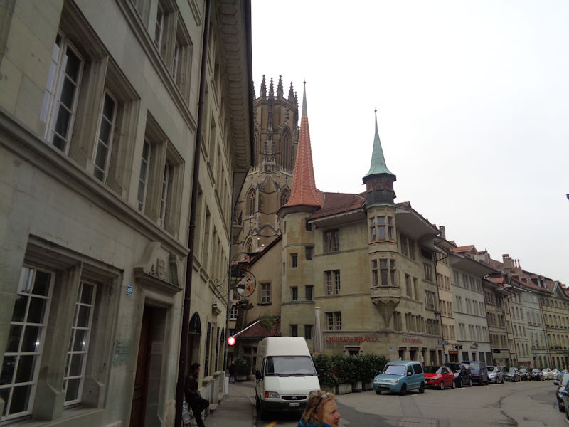 Still the Rue de Romont (named for a village 20km to the south). We're stopped in the Hotel Alpha, not bad at all, just 500m out the other side of the train station; one of our party needs to get a very early train to Zürich tomorrow morning, so we've knocked off half the journey in advance.