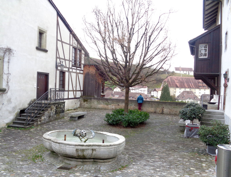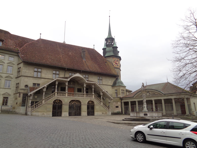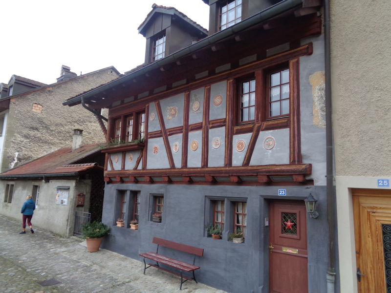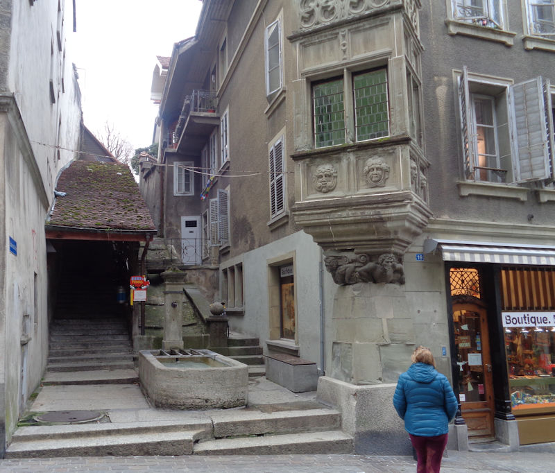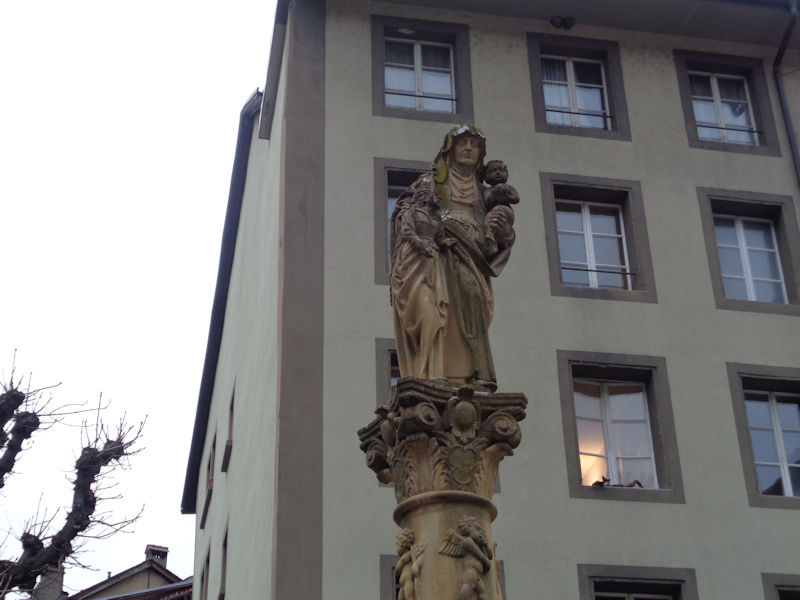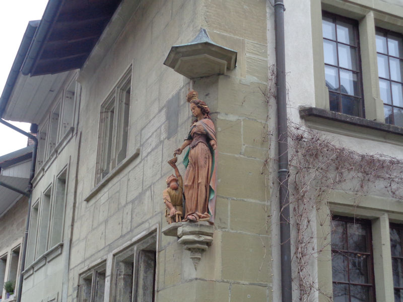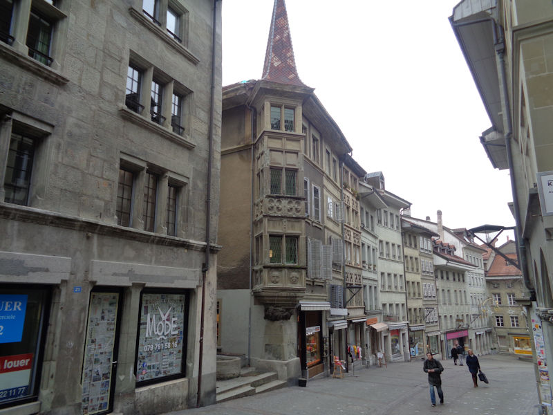 Reminiscent of the corner oriel of the Maison Pfister in Colmar. Fribourg, with its many monasteries dating from the 13th century, remained a Catholic enclave surrounded by newly Protestant territories in the 16th century Reformation, and as such attracted at least five more monasteries and became a European centre of Counter-Reformation inspiration. The home of the Catholic Bishop of Protestant Lausanne was moved here in 1613, and it's now the seat of the Diocese of 'Lausanne, Geneva and Fribourg'.